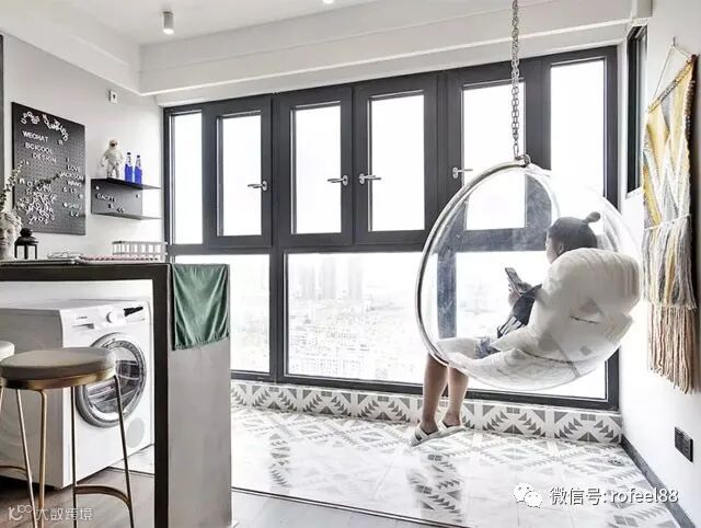 拉斐尔家具来给大家讲讲,自从带烘干功能的洗衣机出现以后,很多人就不在阳台晾晒衣服了。但是阳台这么大的空间,放在那里不用是非常浪费的,不如把阳台和客厅打通,让客厅的面积大大增加,在阳台上腾出一块区域放吊篮或者花草。