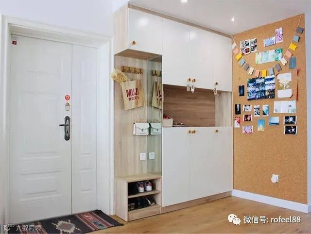 拉斐尔衣柜给大家讲讲,有的户型进门后在大门侧边有面与大门垂直的墙,在位置足够的情况下就可以把鞋柜装在这里,也不会影响到大门的开关,这样对的空间利用也是非常的实用且精致的。
