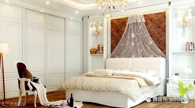 再者,主合理利用配饰。卧室的终极目标一定是温馨舒适的,因此合理的使用一些必要的家居饰品也是非常有必要的。因为家居饰品的主要作用就是使得家庭更加的温馨,一些看起来非常可爱的摆件,一些比较个性的隔板等等,都可以起到很好的装饰效果。还有就是带衣帽间的主卧设计,要在衣帽间的造型上下功夫,配以精致的装饰配件,以起到良好的装饰效果。