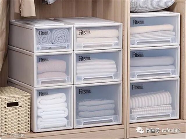 第一种是用作日常频繁使用,买几个宽度、深度、高度都合适的收纳抽屉叠放衣物。