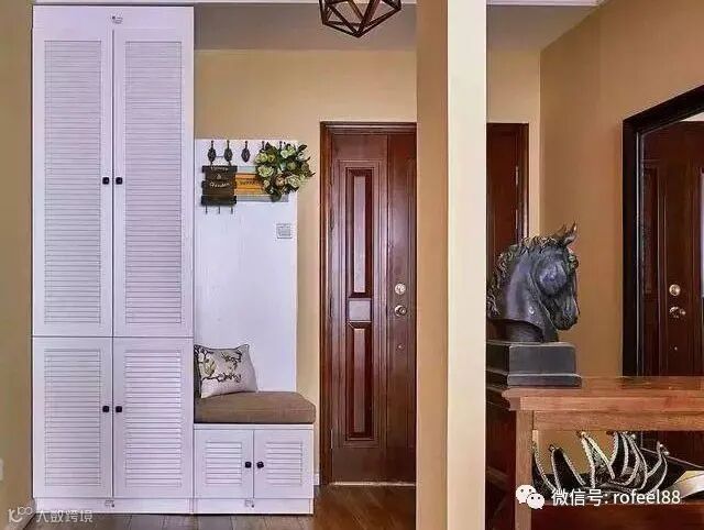 拉斐尔衣柜来给大家讲讲,我们一进门的右手边做了一个通顶的白色玄关鞋柜,还配有换鞋凳与挂小物件挂钩,真的是很贴心的设计,超级实用又美观,一进门就喜欢上了,怎么办!