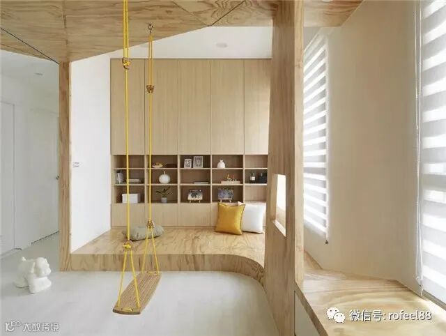 拉斐尔衣柜来给大家讲讲,家里空间够大的家庭,可以由师傅现场手工打造孩子的游乐设备,安全牢固,贴合空间。滑滑梯、秋千、多功能床都可以作为游乐空间的设计主题。