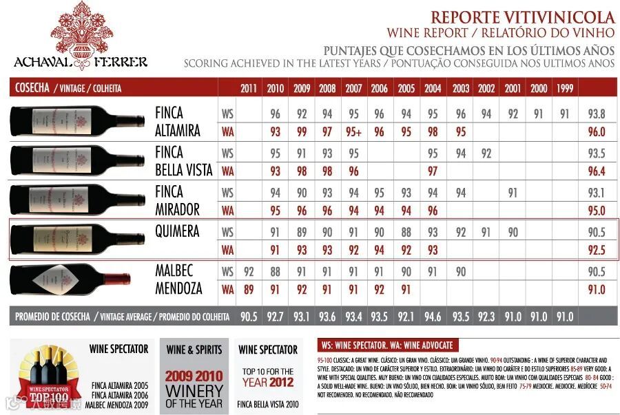 其酒款阿塔米拉干红葡萄酒(Malbec Finca Altamira)更是连续三年入围葡萄酒世界权威杂志《葡萄酒观察家》(Wine Spectator)百大葡萄酒名单