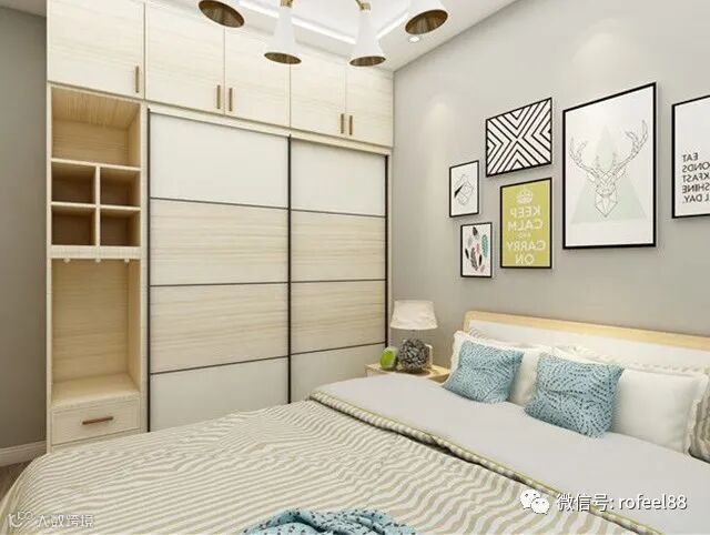 推拉门是左右开合,不占空间。而平开门打开时需要占一点空间,前期设计时需要规划好尺寸。如果卧室面积比较小,衣柜距离床头柜很近,用平开门的话就很勉强了。