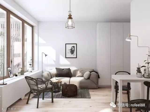 家居色彩的选择上,偏向浅色如白色、米色、浅木色。常常以白色为主调,使用鲜艳的纯色为点缀;或者 以黑白两色为主调,不加入其它任何颜色。空间给人的感觉干净明朗,绝无杂乱之感。