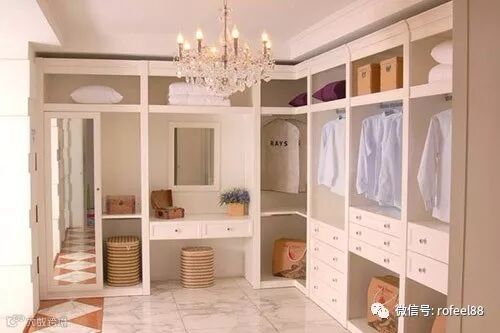 拉斐尔整体衣帽间,不仅拥有强大的收纳功能,还能更好的利用空间,适当的还可以加入一些梳妆台、装饰镜、换鞋凳等物品,再对衣帽间内部进行一系列划分,使衣物的摆放更加一目了然。