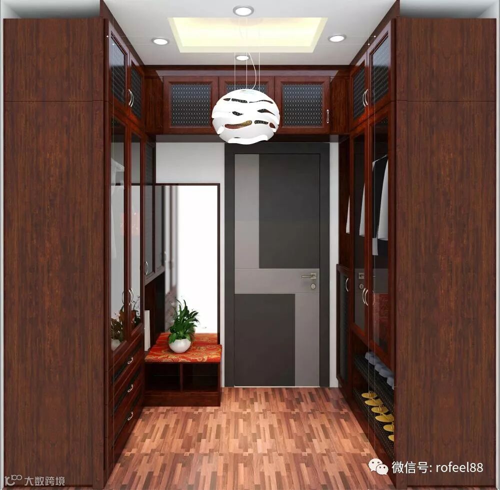 小户型家庭,也可以拥有一个属于自己的衣帽间,我们可以利用墙面空间,再加个过道的位置,帮助用户制作出衣帽间,小小的衣帽间用来存放衣服、鞋子、包包等生活物品非常方便实用。