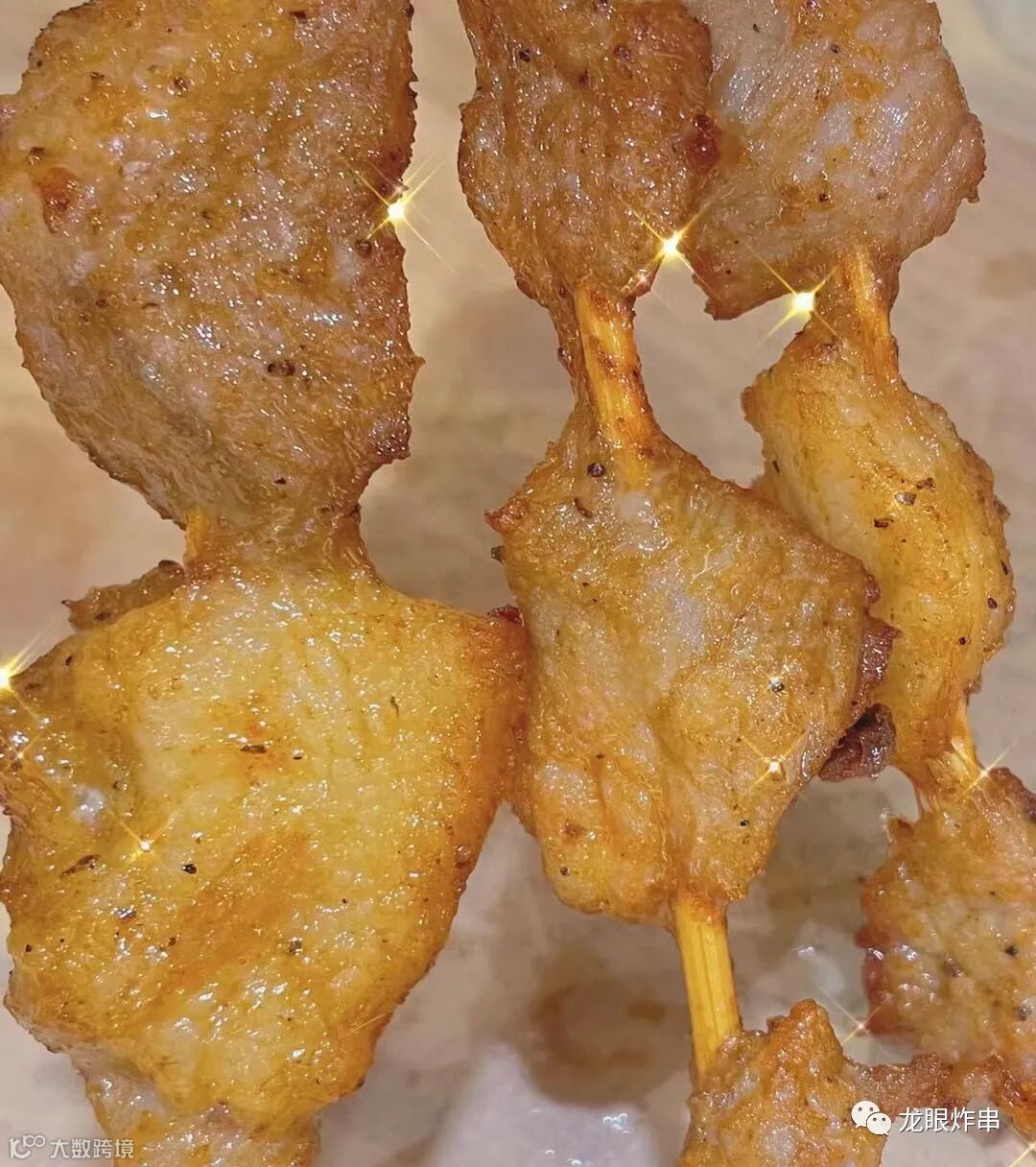 既然店名就叫龙眼炸串,"炸猪肉"就是必点之一,精心挑选了产品的原材料,同时采用猪肉中最嫩的猪颈肉。就算经过高温油炸,都没有破坏它肉质的鲜香。反而将表面炸得焦香,锁住肉汁, 最大程度的保存肉纤维。
