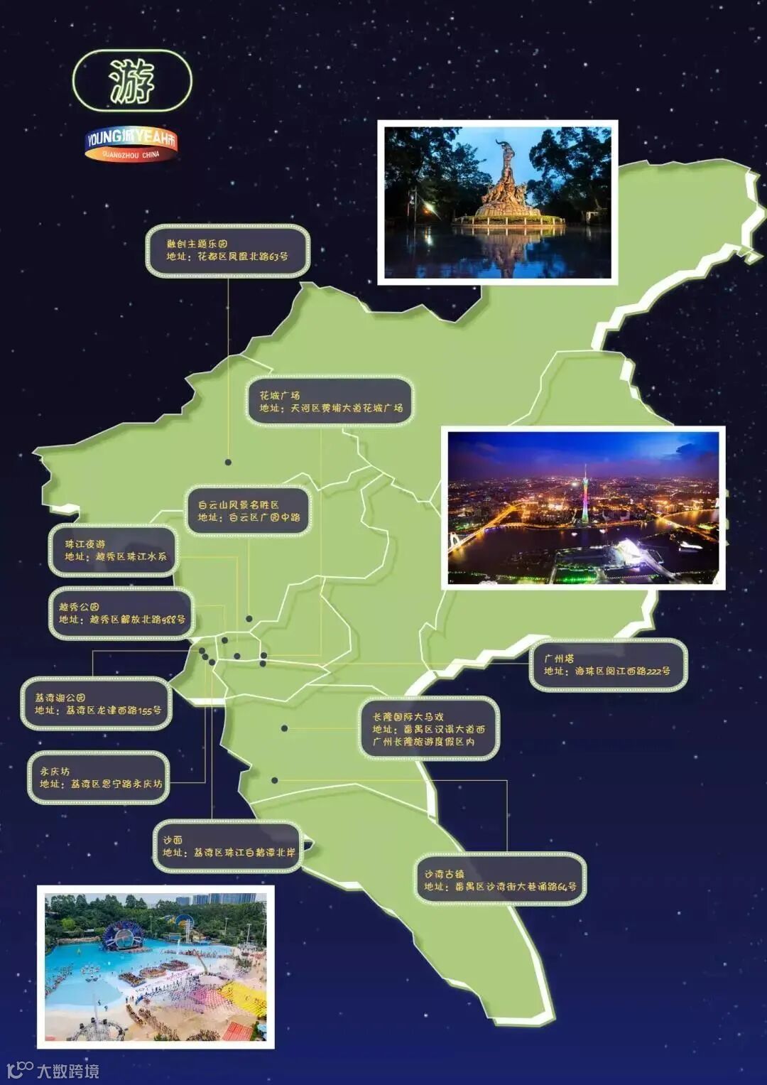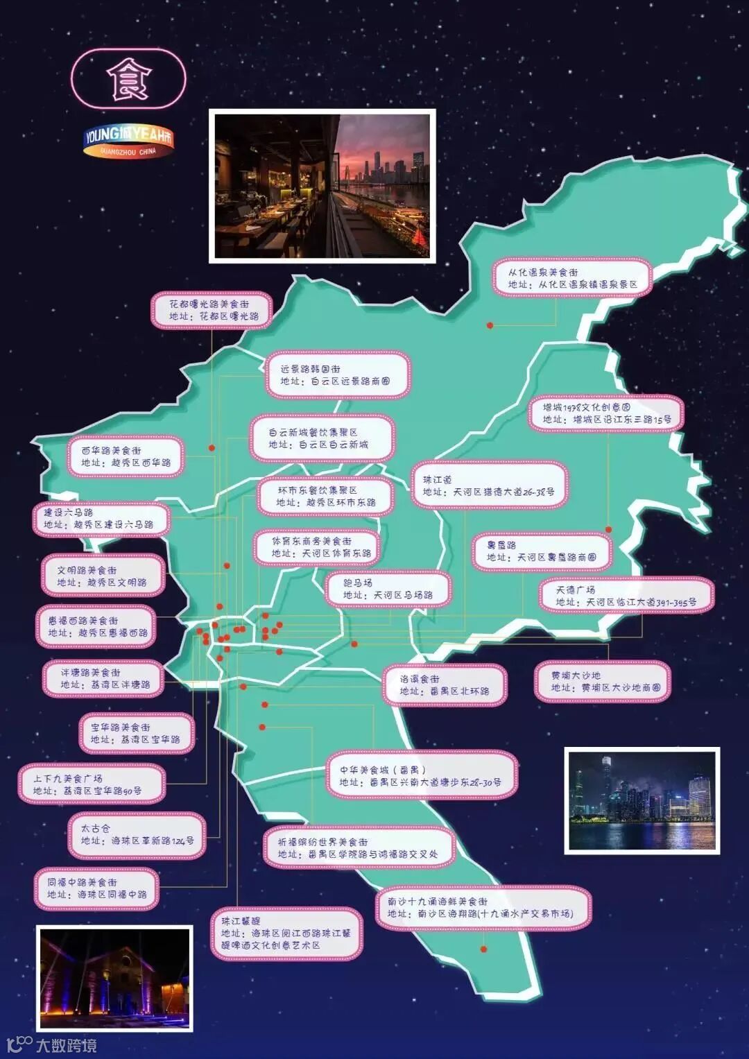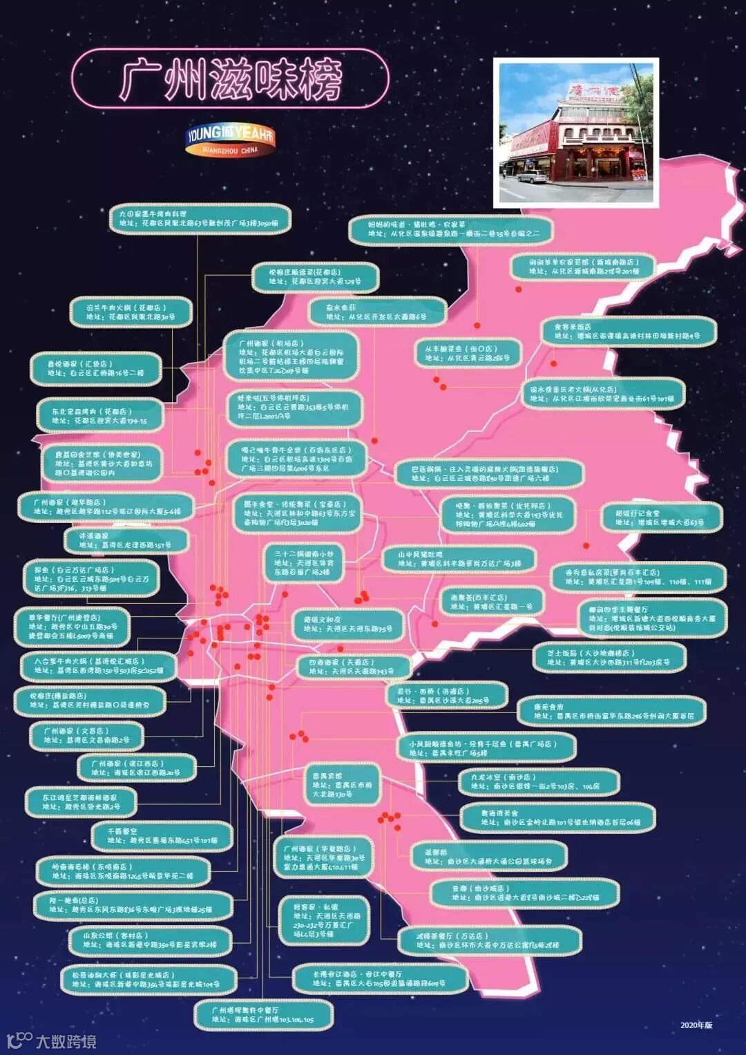 广州是国内唯一荣获“中国美食之都”和“国际美食之都”的双料城市。2.0版地图选取了11个区26处美食集聚地标,供各方饕客“解锁”羊城夜宴。