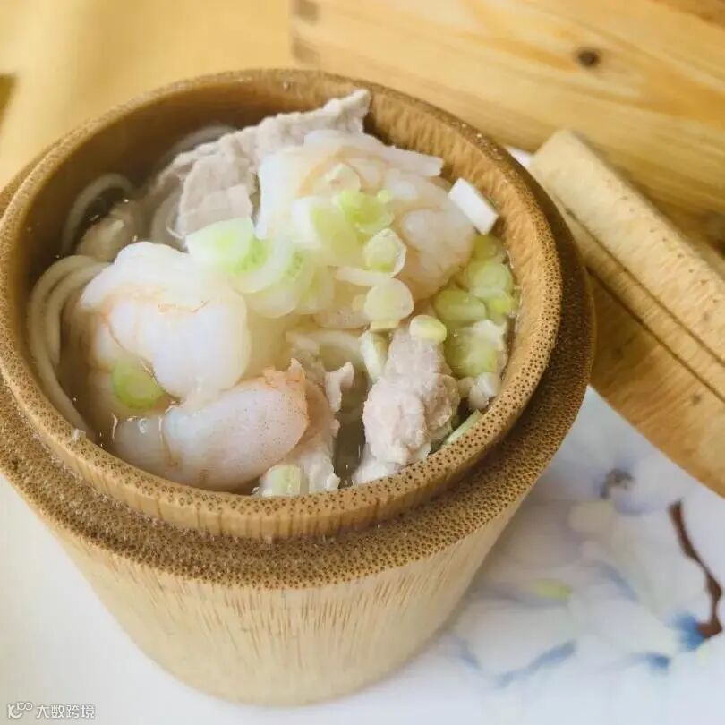 弹牙的龙须面配上竹筒与鲜虾的汤汁味道
