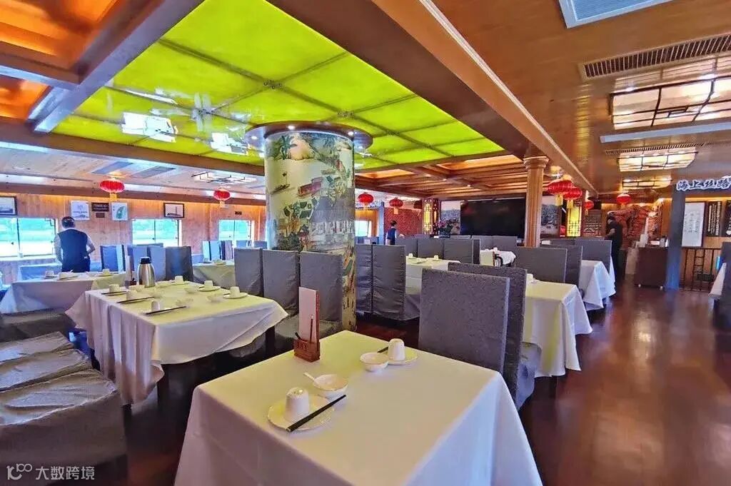 游船的整体装修也继承了传统茶楼之古韵,典雅古朴的元素相结合搭配,共同构成体现了兼具现代设计理念的中式茶楼。力求视觉开阔,营造大气、高雅的氛围,城市的喧嚣都由此隔离开来。