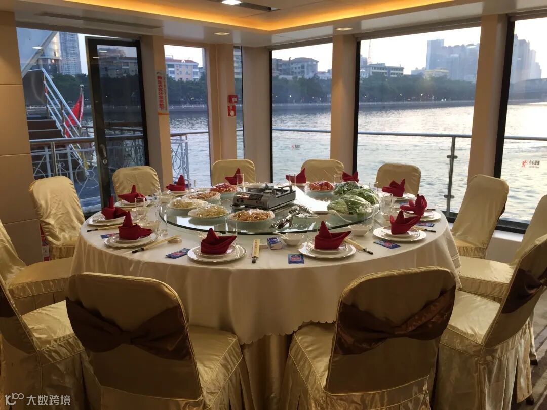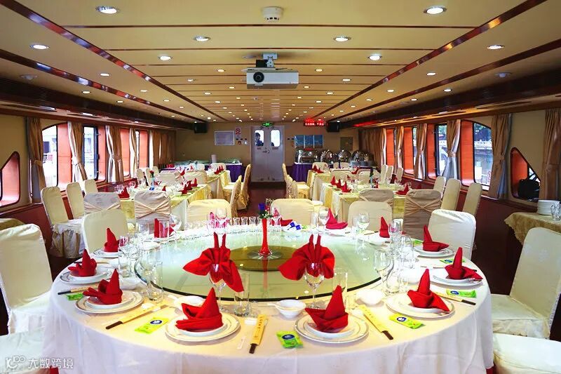 在豪华游船上享用高端围餐服务