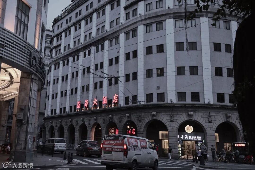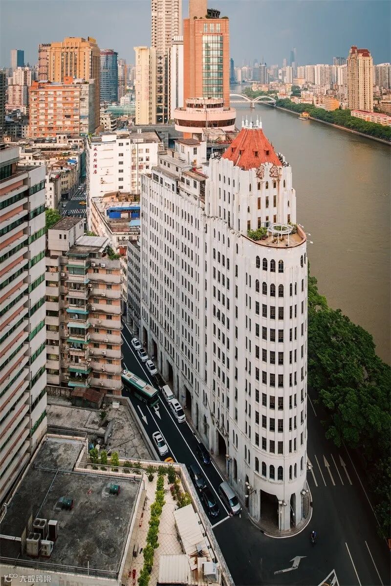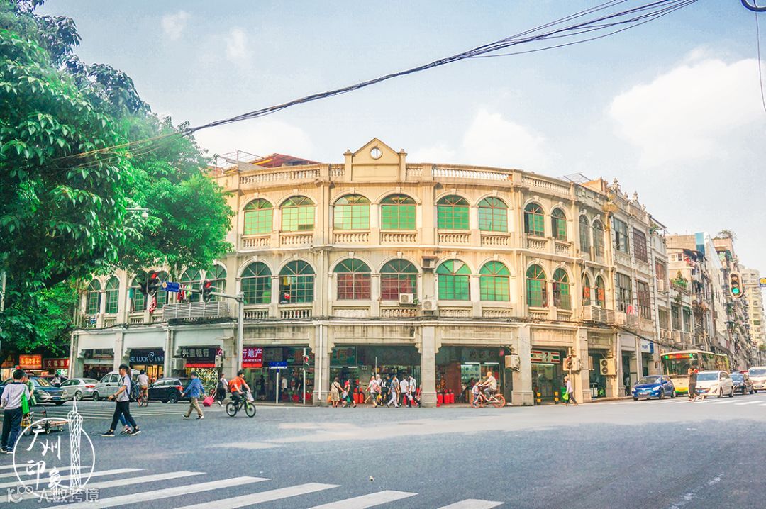 位于长堤的新华大酒店,底层骑楼为古罗马劵廊式,风格雄伟。