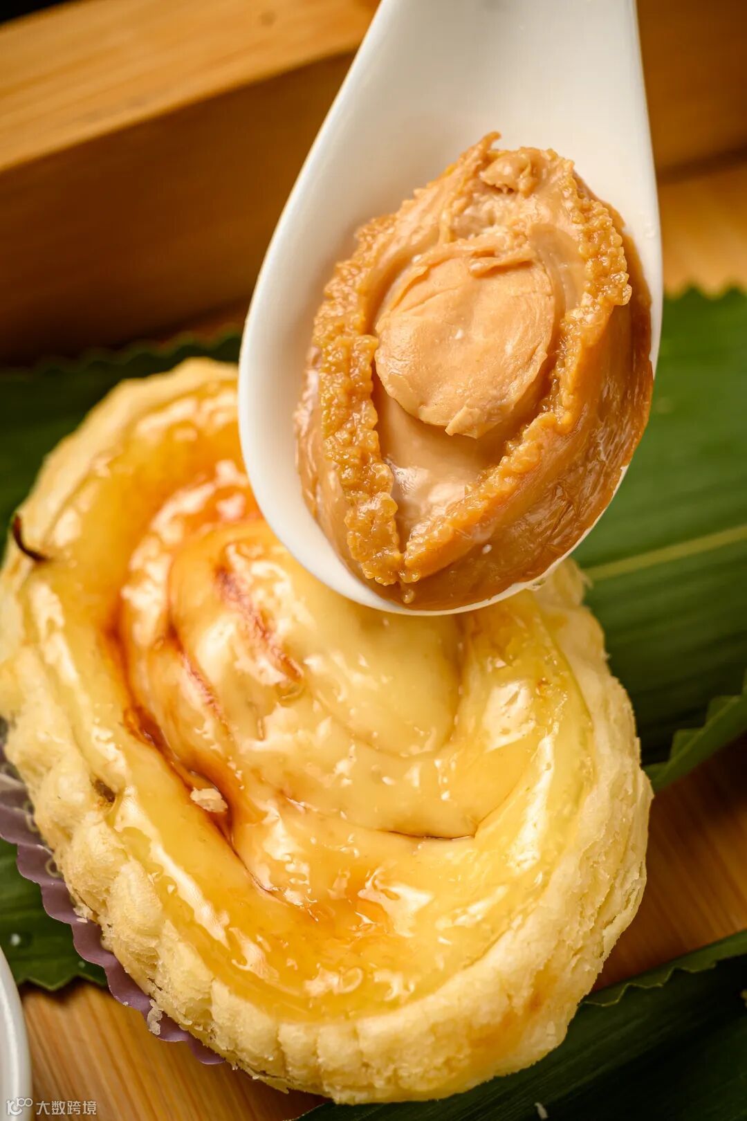 藏在蛋挞里的完整鲍鱼,西式甜点与名贵补品的巧妙结合,加上独特的日式调味,鲜甜口感在吃上的那一刻已经无需再用言语形容。