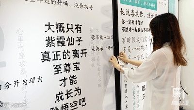 展馆的最后还有一面留言墙,上面有很多衷心的祝福,当然更多的还是告别。有人亲手写下再见,有人祈祷忘记一段感情,放过自己。