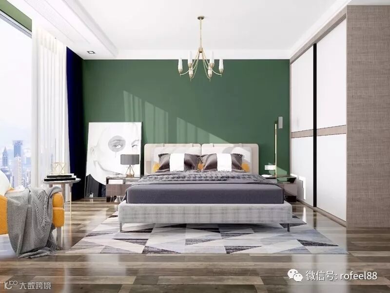 大大的落地窗让卧室内的采光效果极佳,简单的线条搭配,清新的色彩融合,空间感太别强!