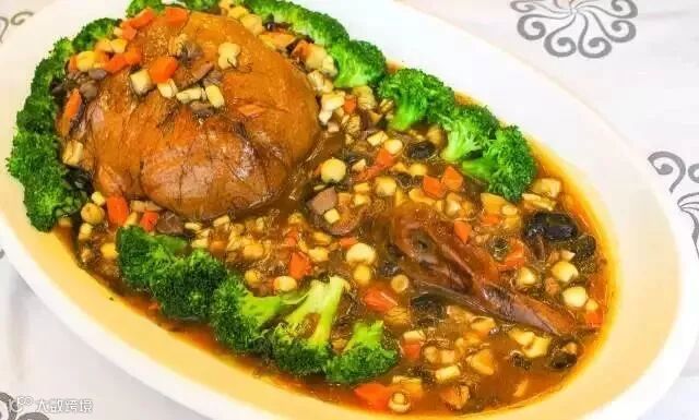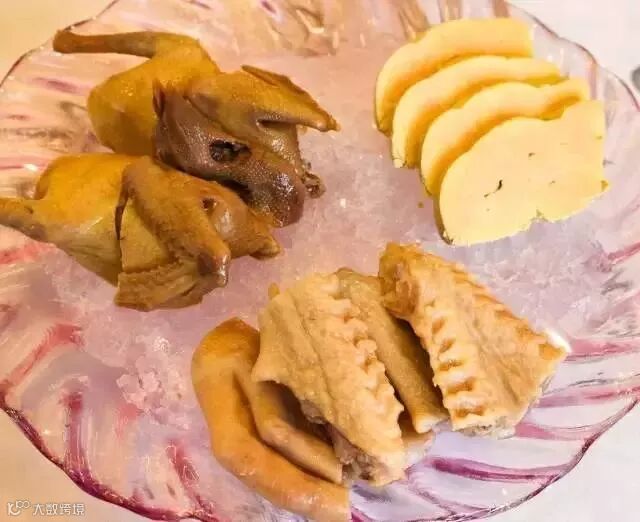 在白天鹅国宴中时有出现,还原那份味道的就是加入秘制白卤水,法国鹅肝、梅子妙龄鸽、白卤水鹅掌翼,三样各自都要制作20多个小时。比猪肉的胆固醇还低的鹅肝,入口像雪糕的质感,味道浓郁而清透,久久不散。