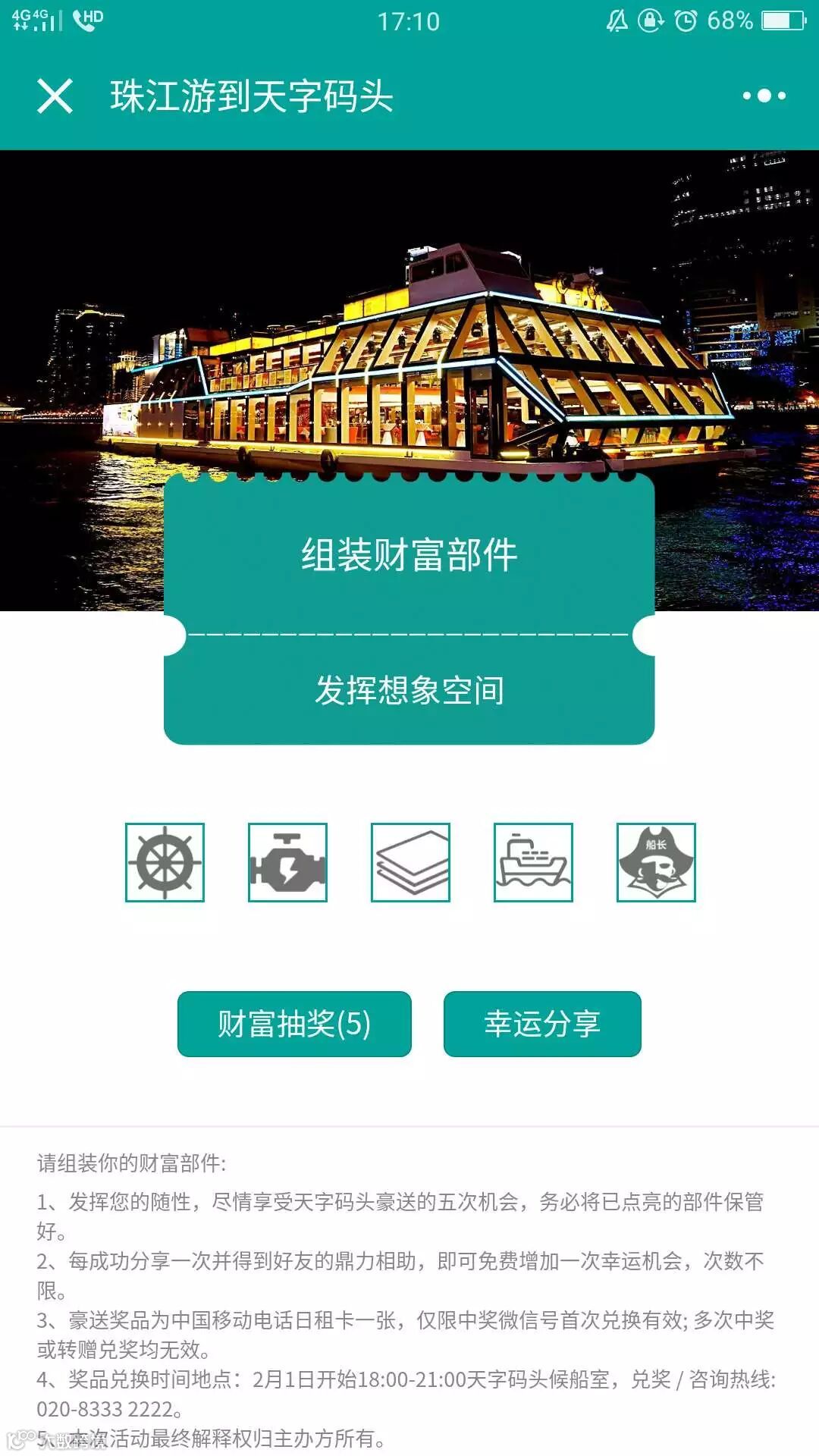 集齐五个部件即可获得礼品一份