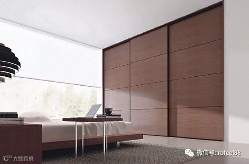 如果你的卧室足够大的话,还可以用入墙衣柜设计一个步入式衣帽间,外面设置一个颇具风格的推拉门,一个私有空间就这样打造完毕。