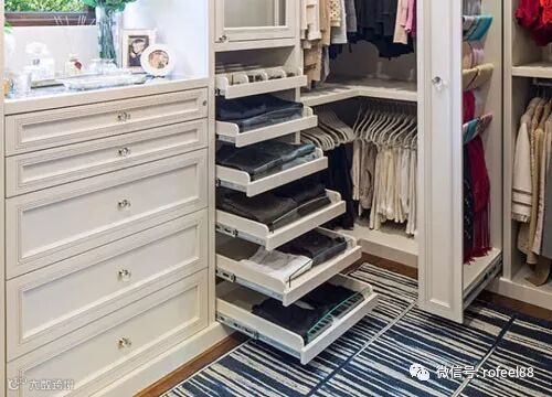 横竖只要开个小门,整个衣柜内所有的衣服便能立地可取,相对衣柜它有存放量大,便于分类,取挂方便,不易皱折等优点。