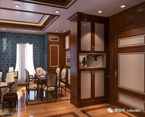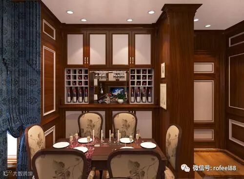 传统的中式餐厅与现代酒柜风格融合,在精致与高贵之间,捕捉生活的精美细节,精致而不华艳,高贵而不流俗,以独特的精湛工艺诠释时尚,古典中隐含优雅。