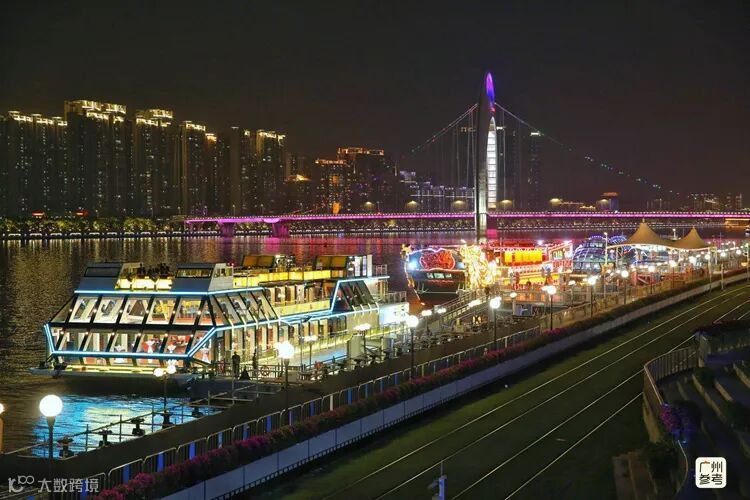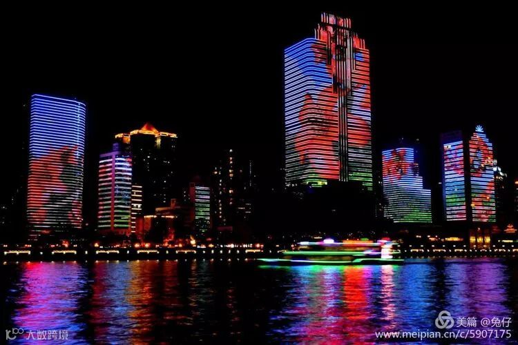 登上夜幕下的三楼露天平台,两岸灯光变幻多彩,观看“珠江传说”LED动画时仿佛置身于一个超大露天影院。