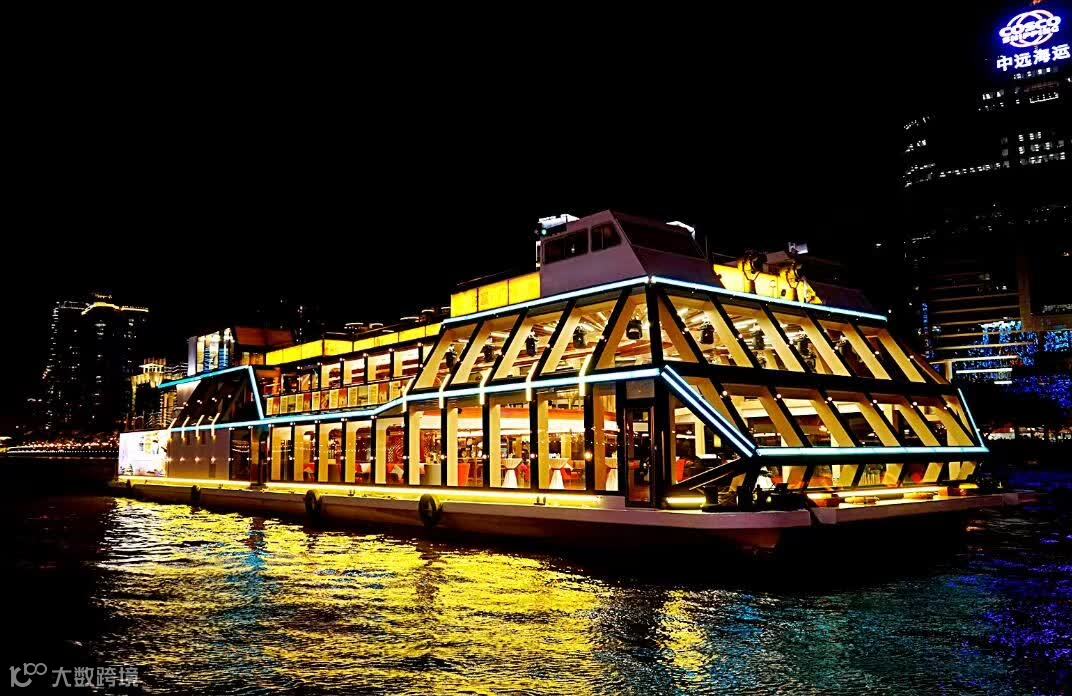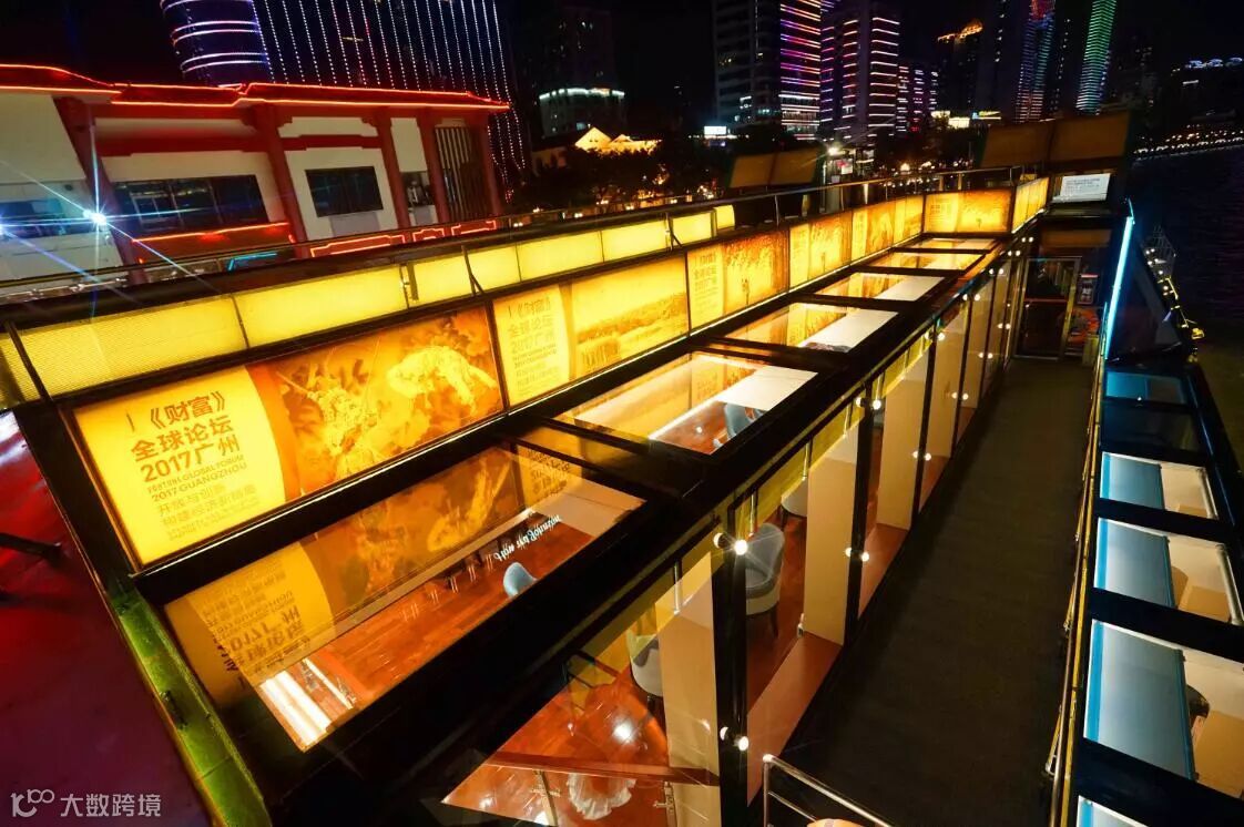 游船外部的灯箱贴上了《财富》全球论坛的宣传画面