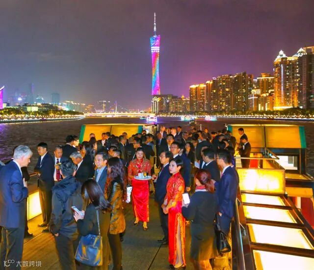 昨晚的无人机表演多达1180台,由广州企业亿航研发,再一次打破了吉尼斯世界纪录!欣赏完无人机表演,财富大咖们登上由5艘游船组成的游船编队一同夜游珠江。其中广州财富号作为船队的领航船闪亮登场,广州之星的接待团队在游船上为贵宾们提供了星级的服务和优质的游江体验。