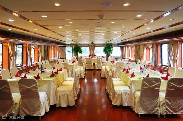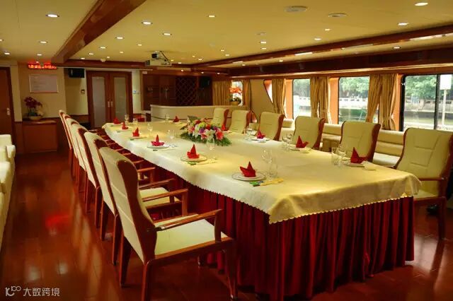 一层设有多功能会议厅及VIP的KTV房,配套投影、电视、音响及点歌设备。二层为通透玻璃的观光大厅,配备有高级雅座及浪漫情侣座,空间宽敞,船头及船尾均设观光走廊。