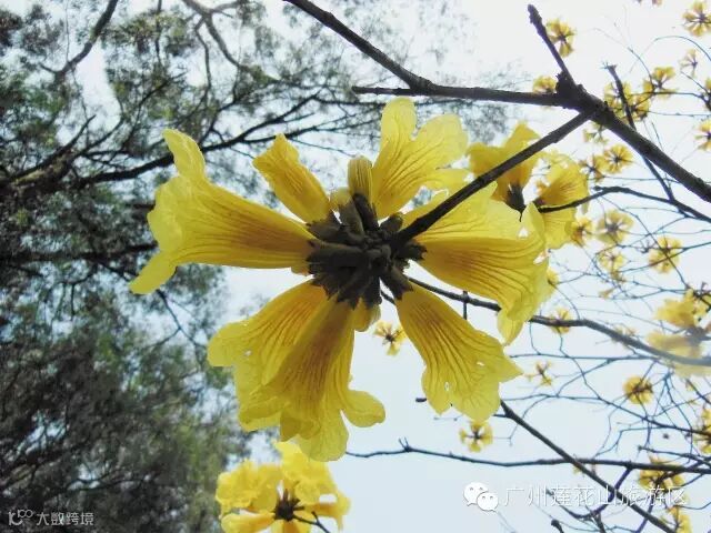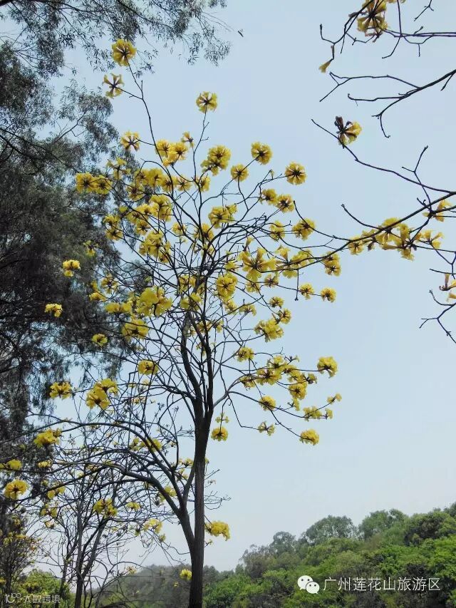 黄花风铃木,又称黄金风铃木,原产于中南美洲,是热情国度——巴西的国花,因花冠呈漏斗形、形似风铃而得名。