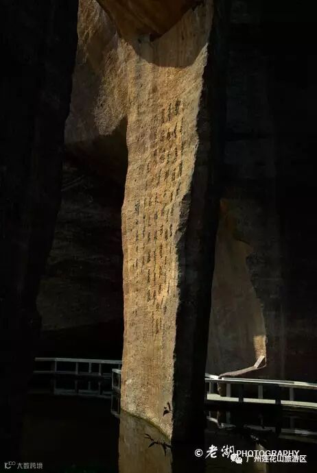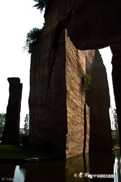 还有一处的岩石被开凿成一个薄薄的石壁,有好几层楼高,在下面的水池的衬托之下,显得十分高大。在古时候技术条件之下,凿成如此之高的薄壁,而不至于坍塌,确实需要很高的工艺。