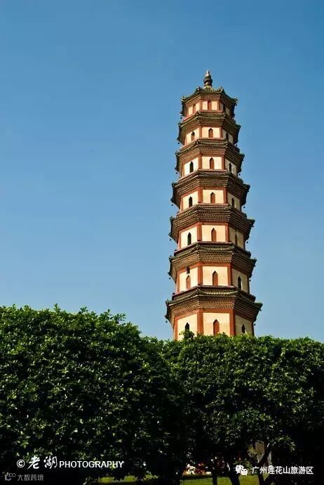 进入莲花山,首先引入眼帘的是被喻为“省会华表”的莲花塔。莲花山高约50米,建在莲花山顶,于1612年修建。明万历四十年,番禺举人李惟凤等建塔,原名“文禺塔”。因莲花山多砺石,又名"石砺塔"。又因其东西山坡有一块天然狮形岩石,故又称"狮子塔"。莲花塔属楼阁式砖塔,平面八角形,外观9层,内连暗层共11层。站在莲花塔上,天气晴好,可以看见珠江入海口,远望林则徐硝烟的虎门。 1785年,英国画家托马斯·丹尼尔来过莲花山,曾专门画了一幅《莲花塔和莲花山城》,至今被收藏在香港。
