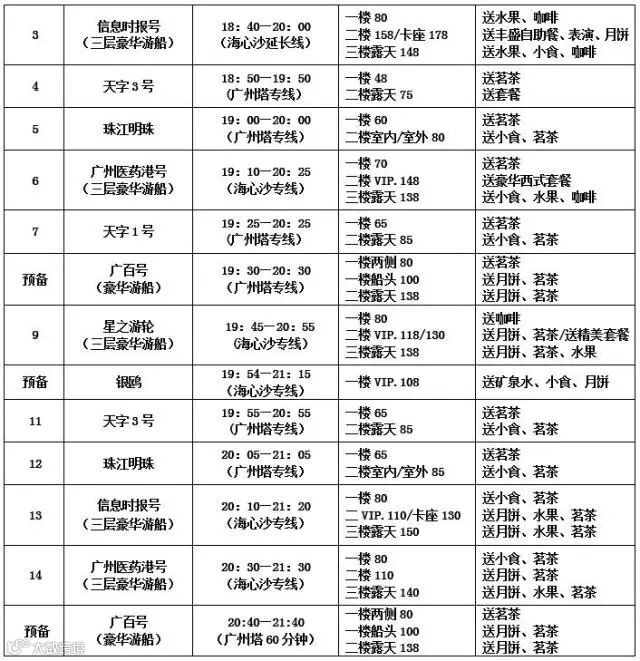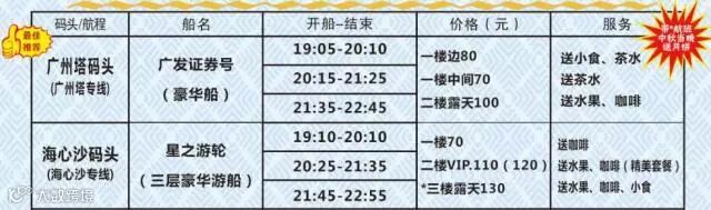 中秋期间天字码头珠江夜游18:20起约10分钟一班船,精华游低至48元/人