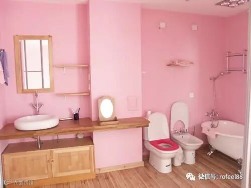 以粉色为主的卫生间,或者是暖色系的卫生间,能够带给人温暖和活力。粉色可以作为卫生间装饰的颜色,烘托更欢乐的气氛,让沐浴也成为一件快乐的享受!