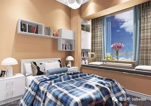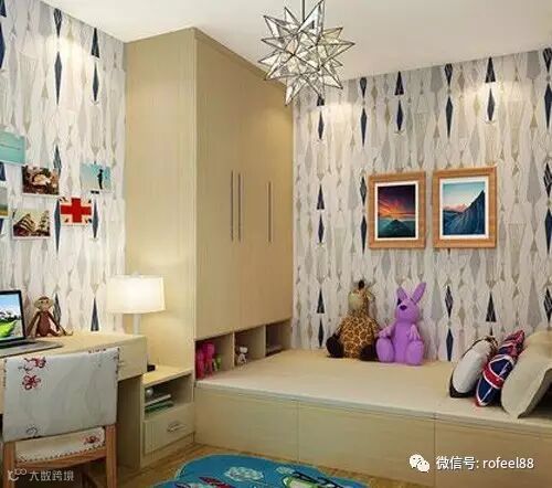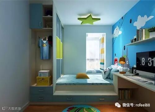 儿童通过感知了解这个世界,大大的飘窗正好能让他跟直观的接触世界。当然了,裸露的窗台易发生危险,儿童房装飘窗需要围一层防护栏。