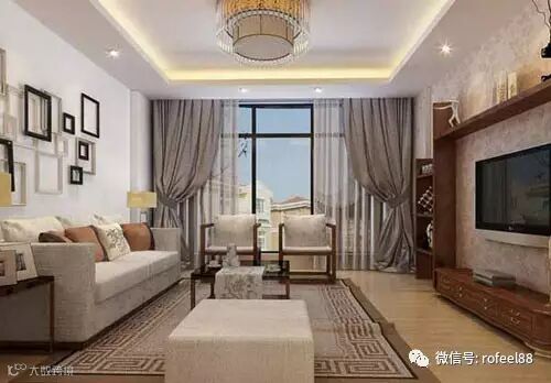 在装修设计客厅电视墙的时候,可以依照这样的定律。从墙到家具到地板,可以这样分:浅—浅—深或浅—深—浅。我们都知道颜色可以给人轻与重的感觉,一般白色和黄色会让人觉得比较轻,而红色与黑色就会让人感觉比较重。从家装颜色风水的角度来看,我们在设计天花板的时候,应当选择浅色系的亮色,而对于墙壁及地面,可以适当加重颜色。这样才符合天清地浊,不会给人头重脚轻的感觉。
