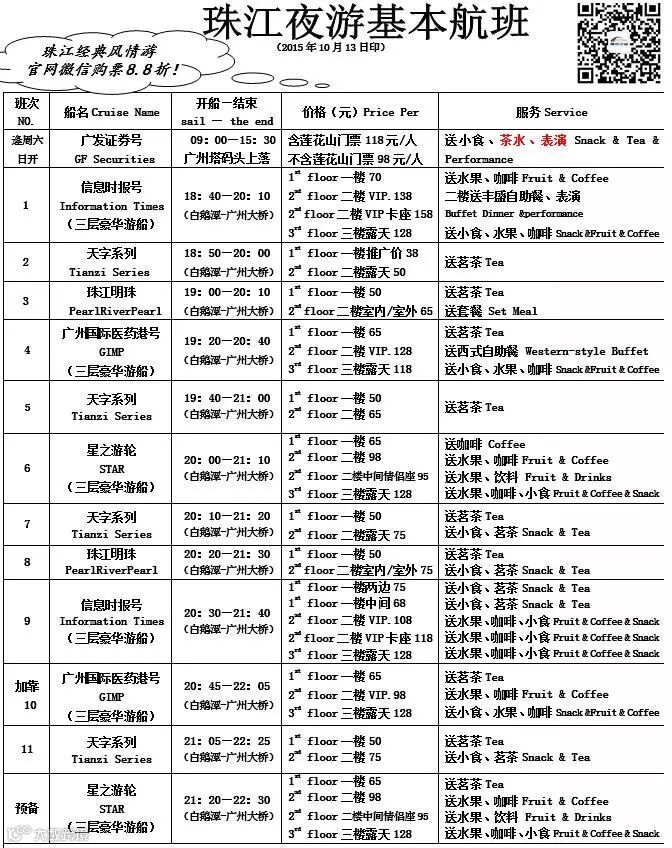 10月15日起,天字码头重新推出西部经典风情游,让你重温老广州风情景点,感受珠江不一样的魅力。