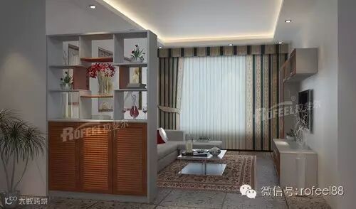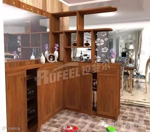 在门口玄关处摆放一个隔断柜,能够在一定程度上阻挡视线、隔断空间,为居室增加层次感,避免了居室的一览无遗。而且从缝隙之中看到的家居布置,更能给人朦胧的美感。