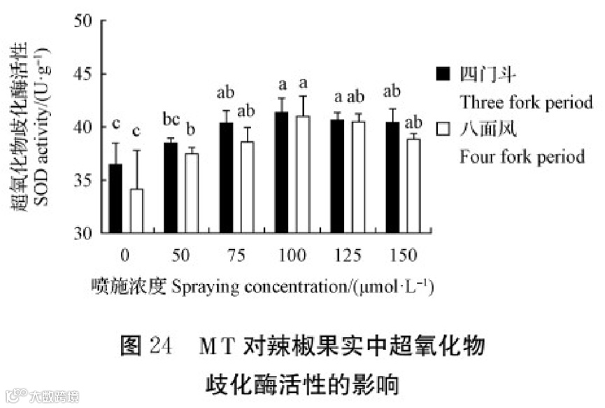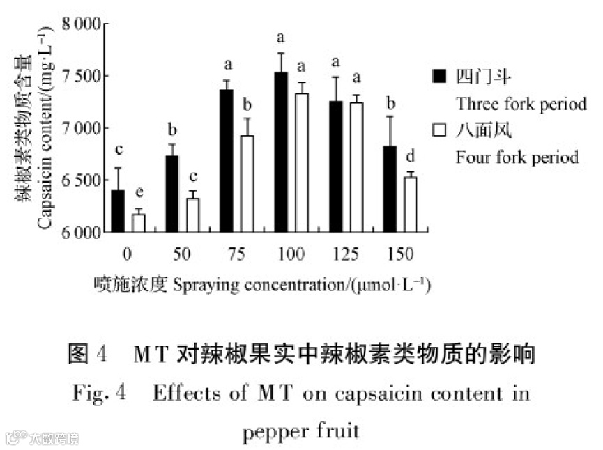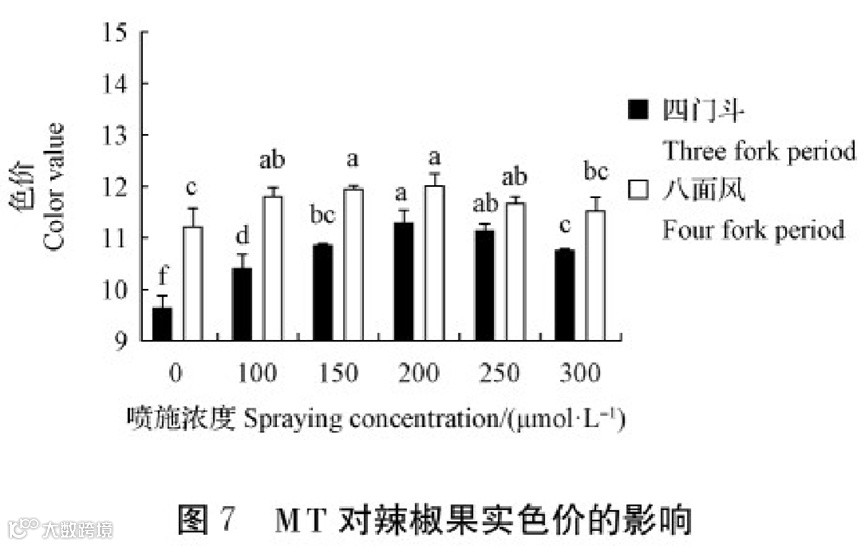 由图7可知在,喷施不同浓度MT下均显著提高了辣椒果实色价。