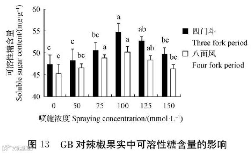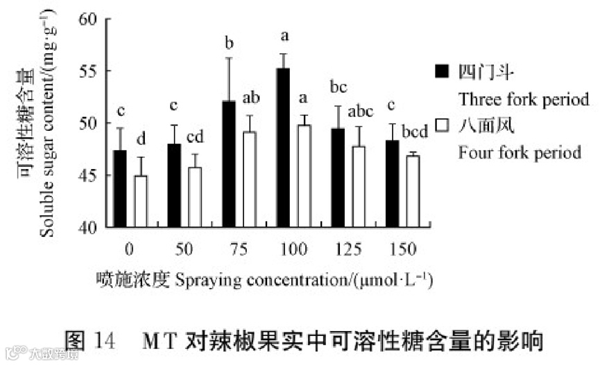 外源MT、GB、ICte6对辣椒果实中可溶性糖含量的影响