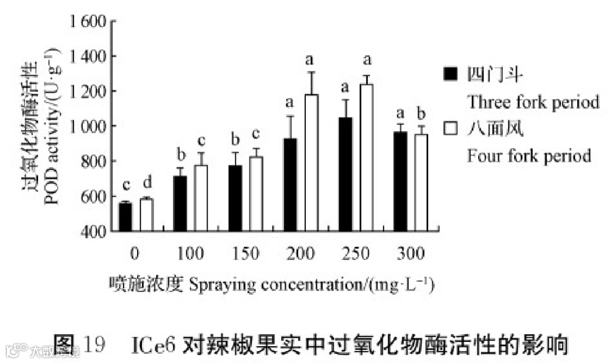 由图4可知,在喷施不同浓度ICe6下均显著提高了辣椒果实辣椒素类物质含量。