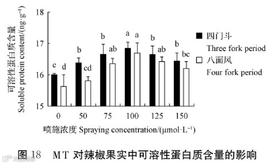 外源MTG、BI、Ce6对辣椒果实中可溶性蛋白质含量的影响