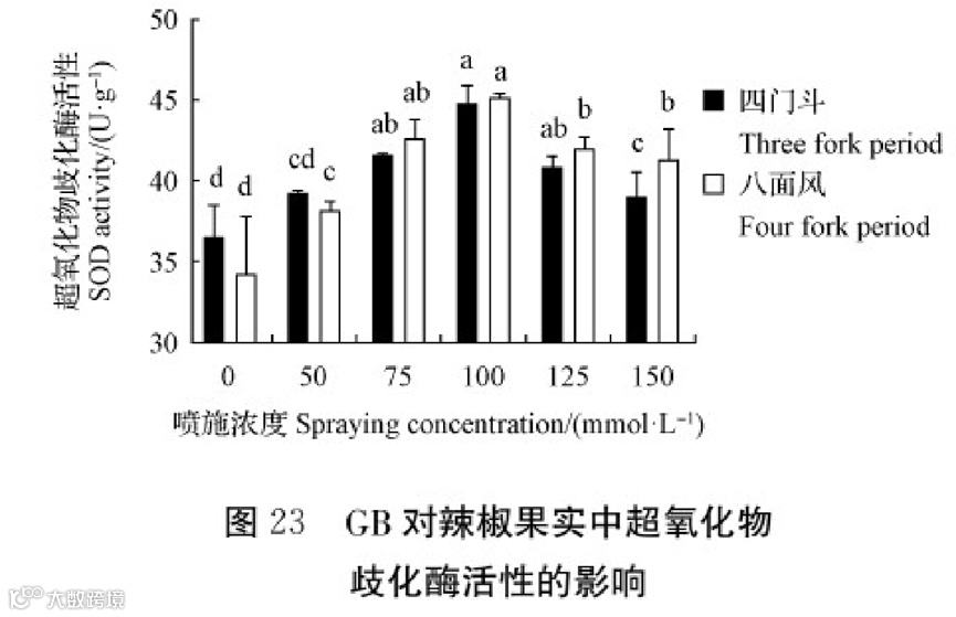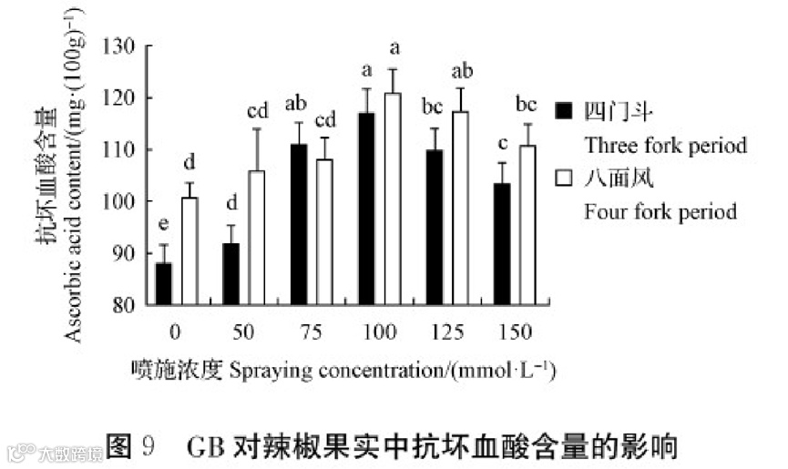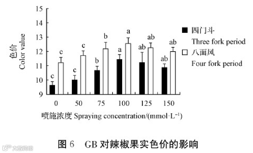 由图6可知,在喷施不同浓度GB下均有显著提高了辣椒果实色价。