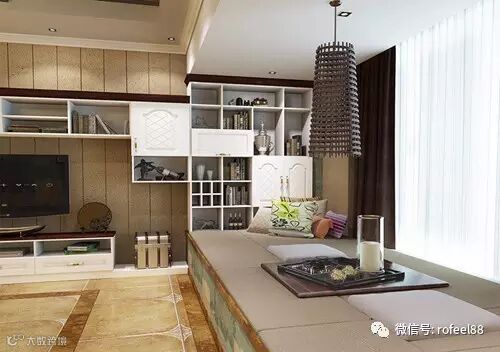 当然,假如真的要在客厅上放大招的话,就装个榻榻米吧!功能强大到你无法想象,只需两平米的地方,茶几、沙发、床、储物柜、书房都可以有。假如再加上一道帘,还能多出一个次卧呢!实在是太诱惑人啦!