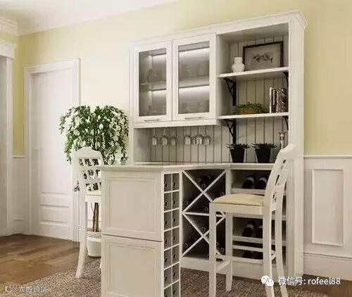 欧式餐边柜以造型精致见长,白色板材更显几分优雅。虚实结合,满足多种储物、藏酒规格。餐边柜带吧台设计更实用,且美观。二人用餐、小酌很方便,同时也省下了不少餐厅空间。