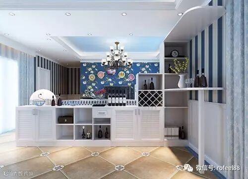 餐边柜旁设计一个休闲式的吧台,使整个餐厅洋溢着田园风格的悠闲,能够让人畅享舒畅、自然的生活。餐边柜与吧台的组合也便不突兀,如果做得好会让人眼前一亮。