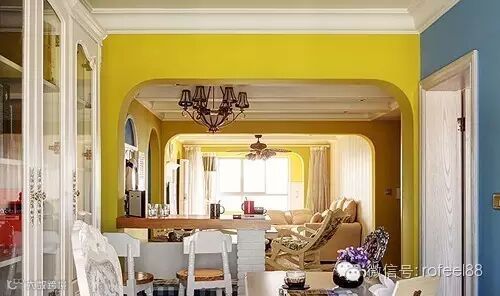 客厅和餐厅用一个吧台相隔,连通的设计视觉上增大了整个空间的面积。