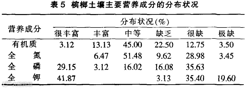 槟榔土壤主要营养成分的分布状况