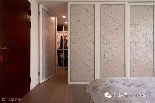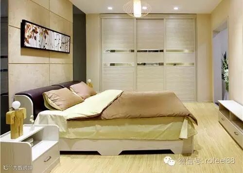 面积达到40平米的卧室内,如果四周都有窗子,可以在床的一侧制作顶天立地的衣柜当作隔断。衣柜可以采取双面开门的设计,方便物品取用。大面积的移动门框架一定要稳固,进口品牌的衣柜一般都有此类产品。