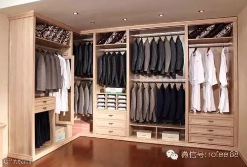 拐角形的衣柜,衣柜能够承担隔断墙的作用,如果房间整体采光好,那么你可以充分利用空间把衣柜设计成顶天立地的款式。如果只有一面采光,那么最好在衣柜上面留出空间,这样自然光可以进入。